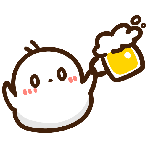 美味しそうな生ビールを片手に飲み会を楽しむもちえながのイラストです。