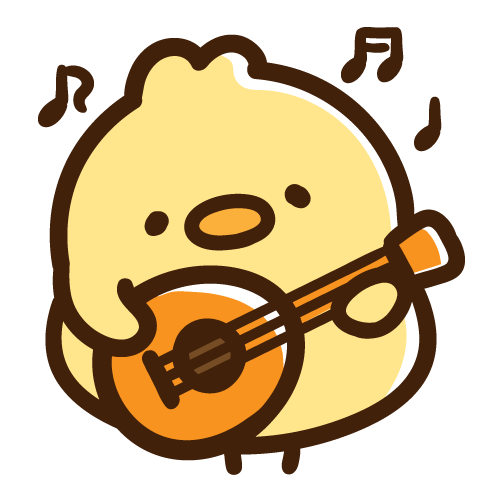 ノリノリでギターを演奏するひよこのイラストです。